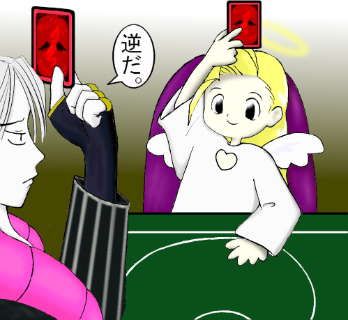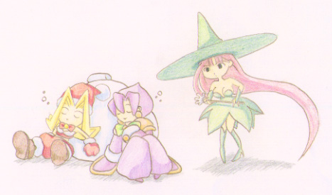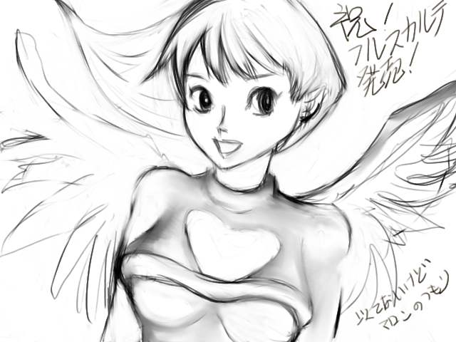 思わずニヤリとさせられる、フルスカルテのイラストをいただきました。 「ちなみにコレの説明は『マイエンジェルにルールを教えるフーリーさん』です。」(コメントより) 実はゲーム中コマンド選択時にフーリーの心臓に向かってヒュッと飛んでゆく小さな光(通称エンジェルサポート)が彼女だったりします。(83KB) |