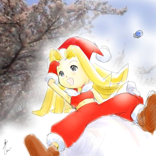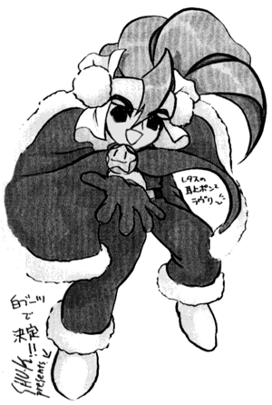 初描きルージュだそうです。 雪模様がサンタの季節にぴったりのイラストです。(51KB) |